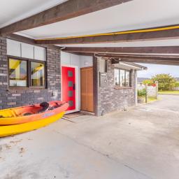 Parking stretches the full length of the property—perfect for a caravan, boat, or extra vehicles—supported by a carport and garage, and space for the kayaks