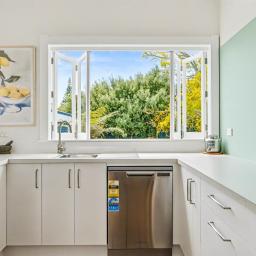 The heart of this residence is the stunning modern kitchen, where sleek cabinetry and thoughtful design create an inspired space for culinary creativity. Bifold windows open generously to the sunny rear deck and garden, dissolving the boundary between inside and out. Everyday entertaining is effortless, allowing for sunshine, light and connection.