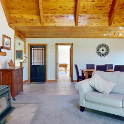 Built-in quality board-and-batten with beautiful shingled gables, the home showcases character and detail at every turn. Inside, a spacious open-plan living area features exposed timber, intricate finishing and warmth from two heat pumps and a fireplace. The stylish kitchen offers a quality stone benchtop and tiled floors, flowing effortlessly to the dining and lounge areas.