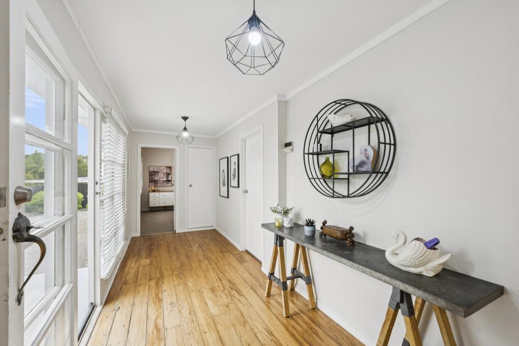 The contemporary kitchen boasts sleek engineered stone benchtops and a crisp white finish, flowing effortlessly into the dining area and separate spacious lounge. Enjoy year round comfort with a heat pump keeping you cool for summer and a cosy gas fireplace for winter nights. Rich matai timber flooring adds warmth and character to this lovely abode.