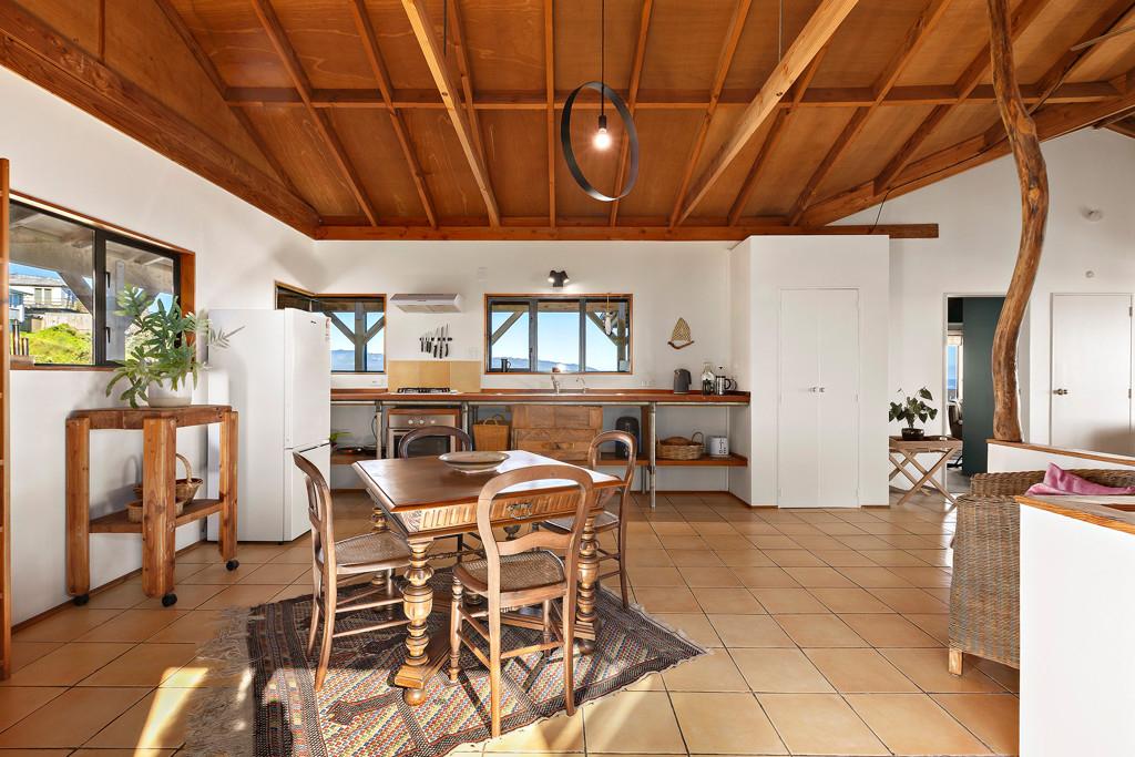 Perched high above the southern coastline and down a private driveway, this home is truly one of a kind. Inspired by Frank Lloyd Wright and Japanese Architecture it has been built for the environment and the elements. It is peaceful and welcoming.