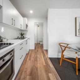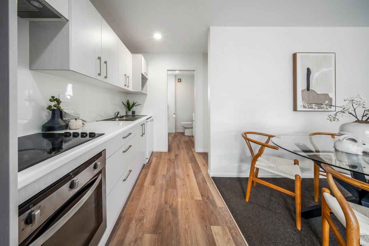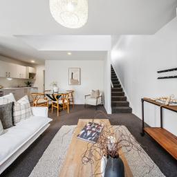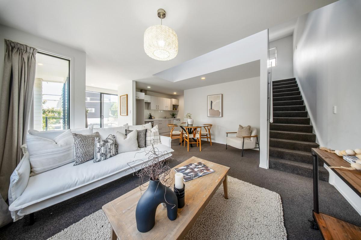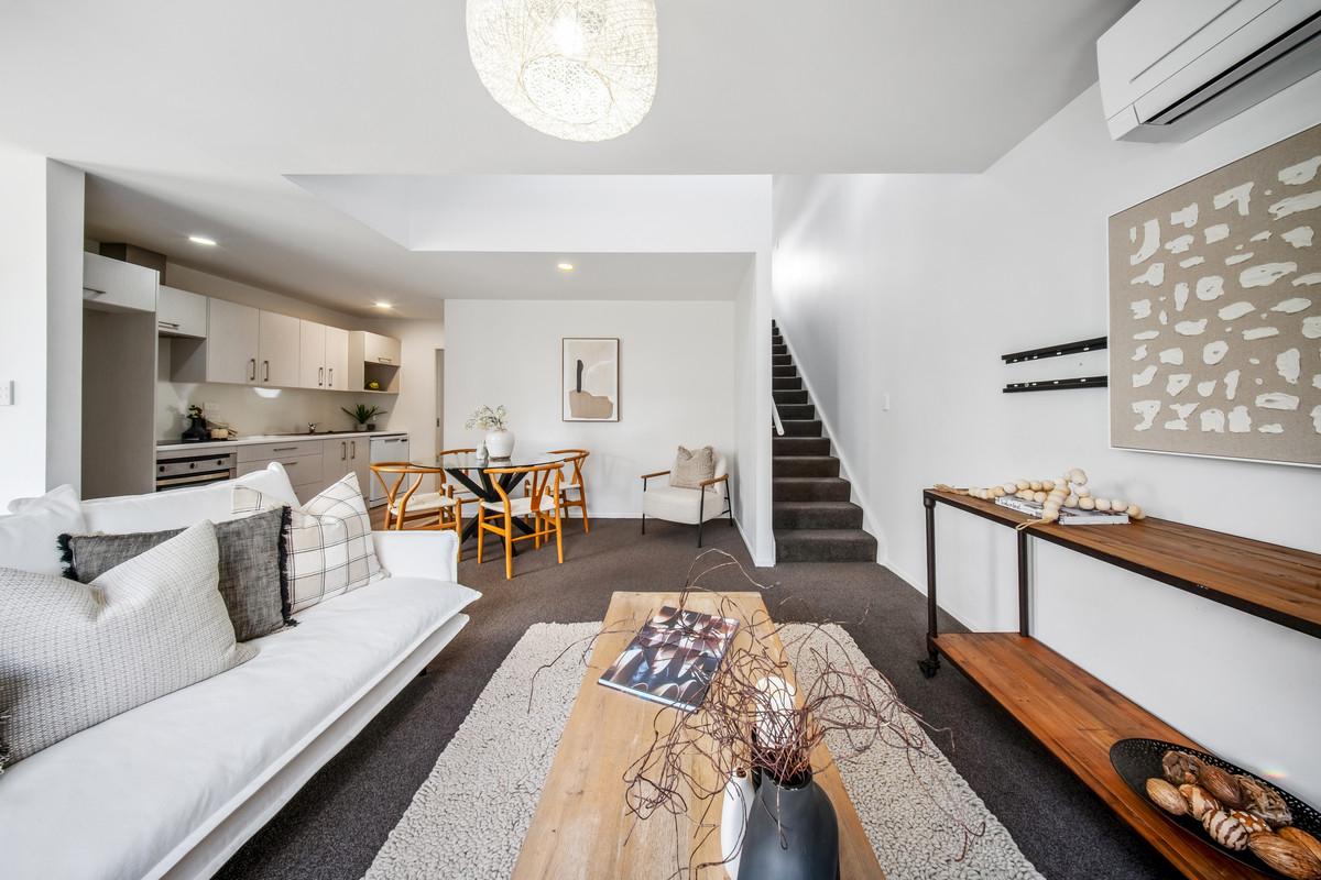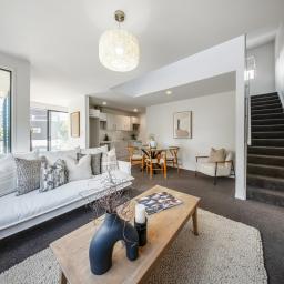 Perfectly positioned in the heart of the Mount lifestyle, this front, end-row three-level townhouse delivers effortless, low-maintenance living just moments from beaches, Blake Park, Central Parade, and the Mount's boutique cafés and shops. With the added bonus of being sited on its own freehold title means no Body Corp fees. Sunlight floods the open-plan living zone, where two separate balconies invite you to relax with morning coffee or an evening drink. A sleek galley-style kitchen forms an easy hub for everyday living, creating a warm, social space that feels both modern and welcoming.
