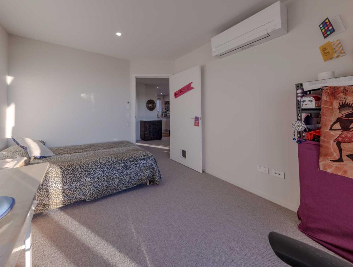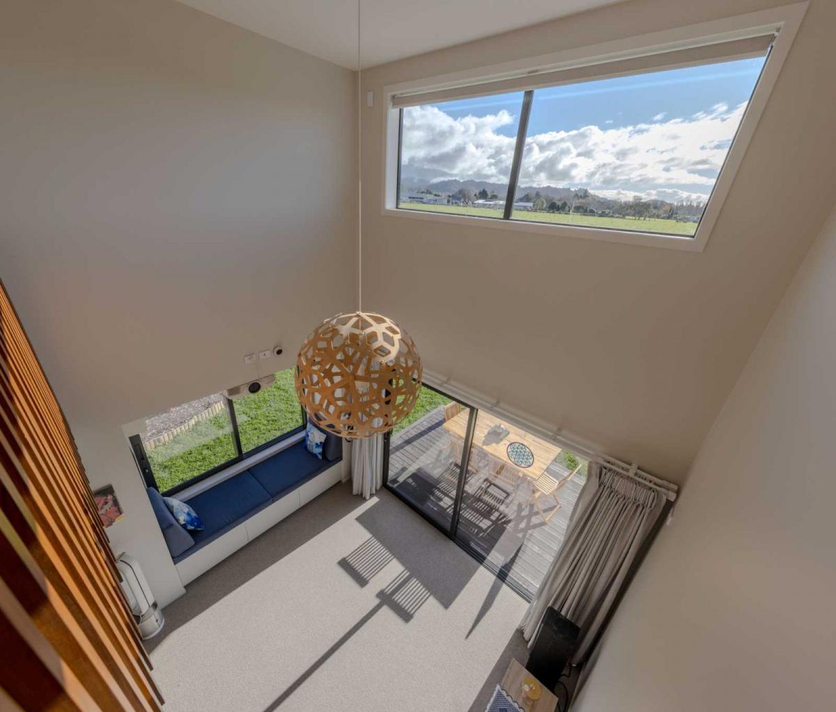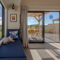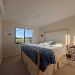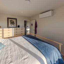 Four Wi-Fi–enabled Mitsubishi heat pumps (one per bedroom + lounge) plus SmartVent Synergy 2 heat-recovery ventilation. Motorised blinds/curtains, low-e thermally-broken windows, and added internal soundproofing—peaceful when you want quiet, cosy when you host.