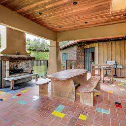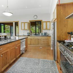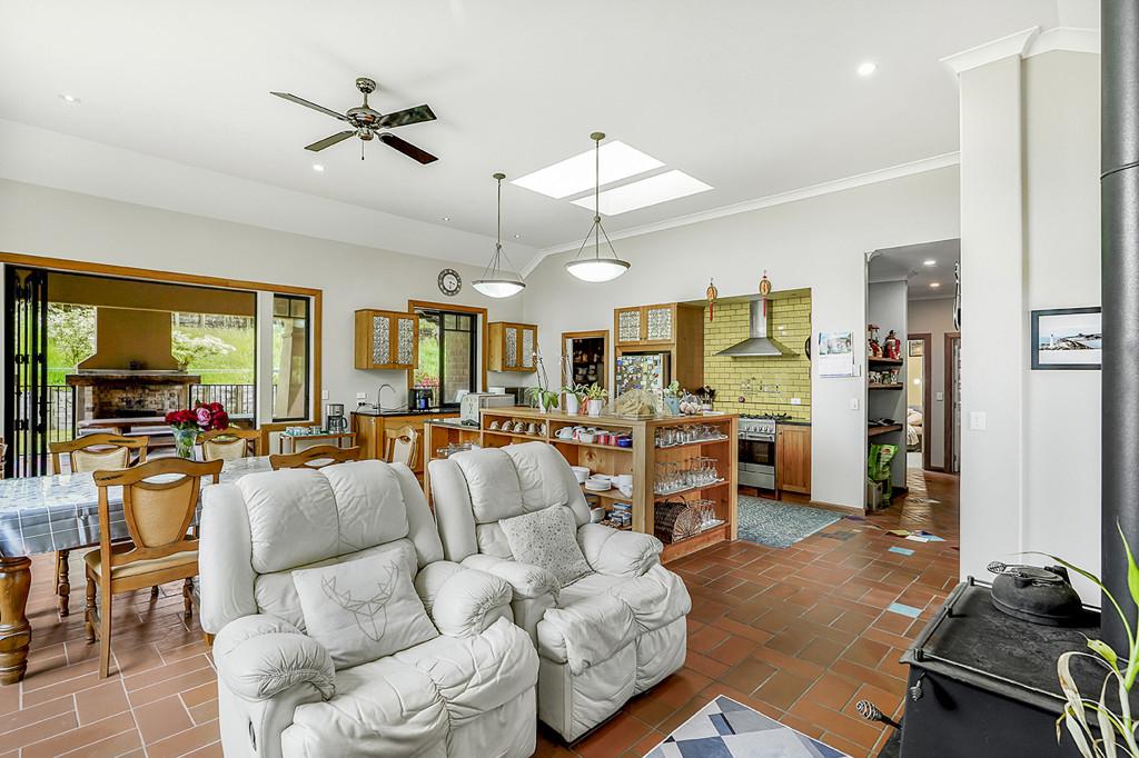 The gourmet kitchen impresses with granite benchtops, native timber finishes, a walk-in pantry, twin sinks, double oven, gas hobs, and a plumbed fridge/freezer. Bi-fold doors and skylights invite natural light and open to the expansive patio and outdoor fireplace - the perfect setting for gatherings year-round.