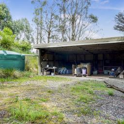 Outdoors, landscaped gardens surround the home with rustic fencing, railway sleeper walls, and thousands of native plants. A large pond adds charm, while practical features include two double internal-access garages, a two-bay implement shed, cattle yards, and multiple rain-fed water tanks.