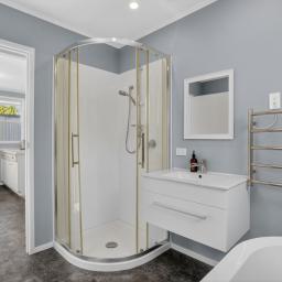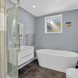 Set on a gently sloping section, there's room for kids to explore or adults to relax in the shade. You're just a short stroll from the safe swimming all-tide beach of Matheson Bay and coastal walks.