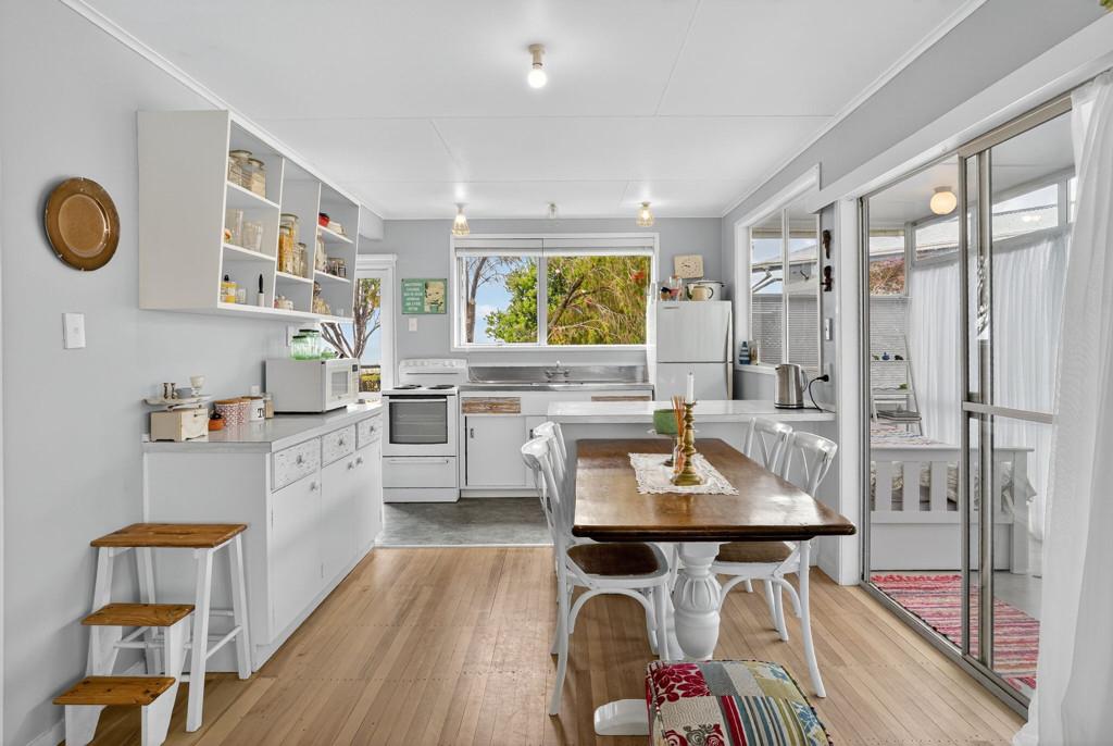 Perched above the bay, this charming two-bedroom Kiwi bach captures the essence of relaxed seaside living. Elevated to enjoy a sweeping bird's eye view across Matheson Bay to the Leigh coast, it encompasses that timeless holiday home vibe.