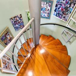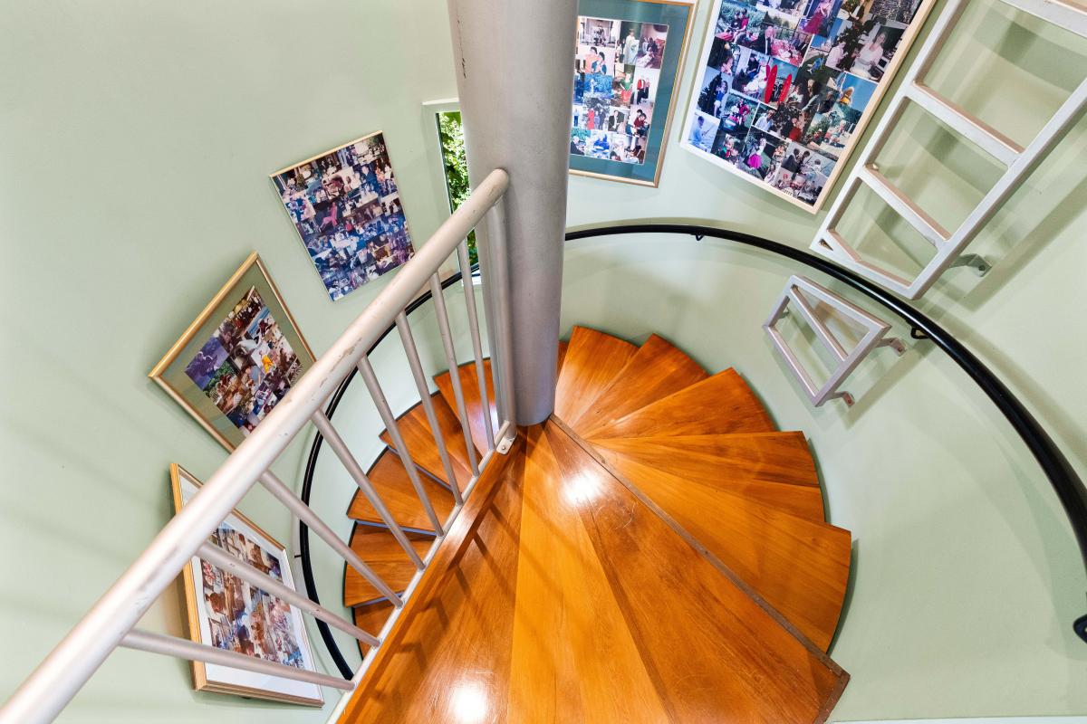 For the wine enthusiast, the spiral staircase leads down to an impressive wine cellar.