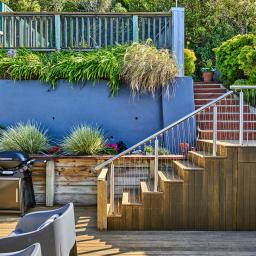 A separate w/c with laundry adds convenience while sliding doors open to a large rear quella deck complete with spa pool that connects to the terraced backyard with raised gardens.