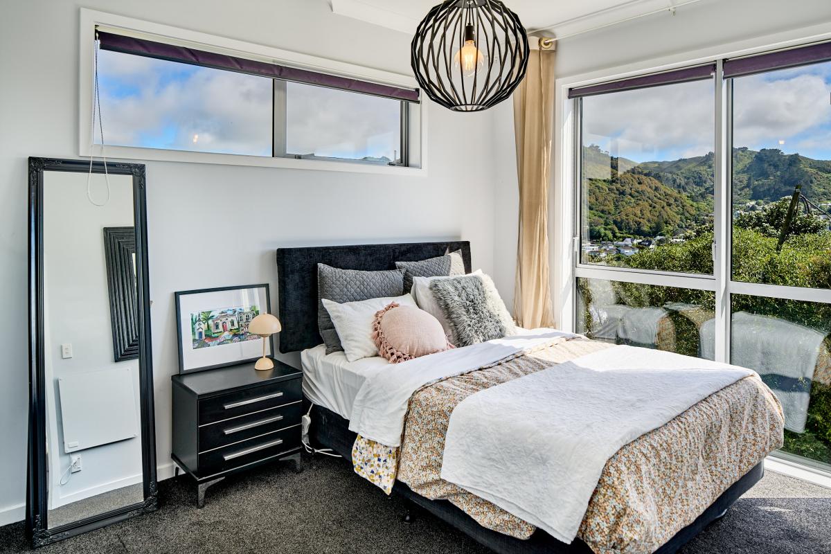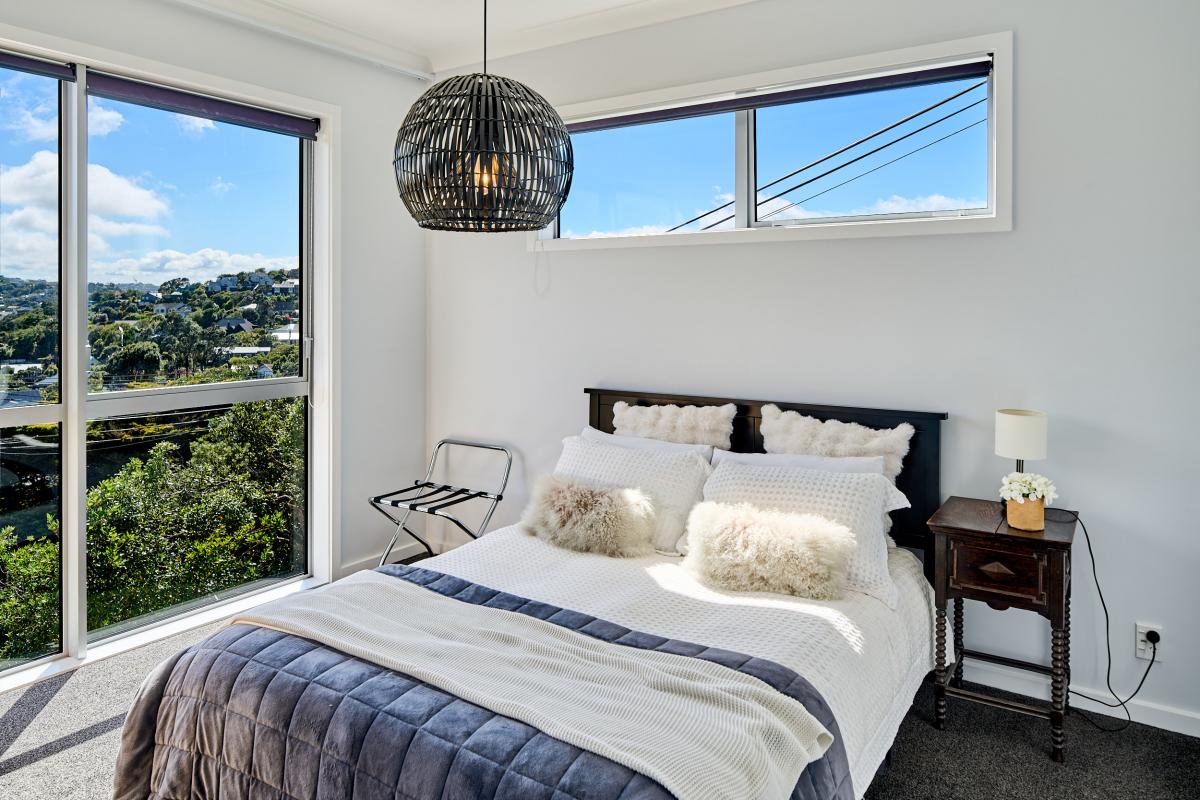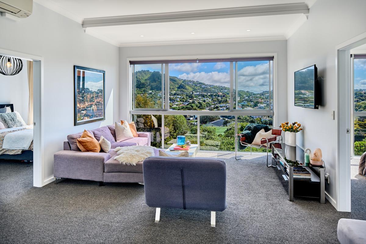 On entry, the attention to detail is immediately clear. The main entrance welcomes you into a bright, airy hallway leading to a generous family area complete with three large double bedrooms, a full bathroom, and a sunny lounge that takes in the elevated views over Nairnville Park & Khandallah. This offers an ideal retreat area. On the opposite side is an office & double bedroom with a kitchenette and its own external entrance provides the ultimate in flexibility. Ideal for teenagers, visiting family, or even Airbnb potential.