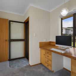 Down the hallway, you'll find a dedicated office nook and easy access to a private patio - an ideal setting for a spa pool for a quiet evening under the stars. A second heat pump keeps the home perfectly temperate through every season, and the spacious laundry provides great functionality with ample storage.