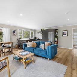 The spacious open-plan living area is bright, welcoming, and made for real life. Think cosy nights in, easy entertaining, and plenty of room to breathe. It's a space that instantly feels like home.