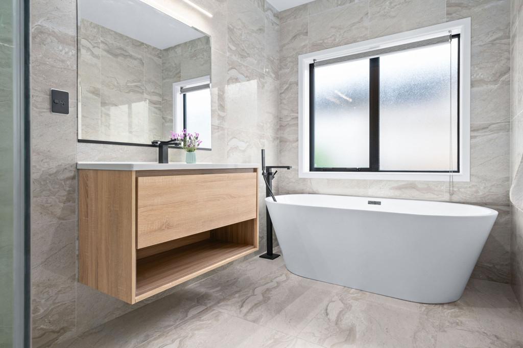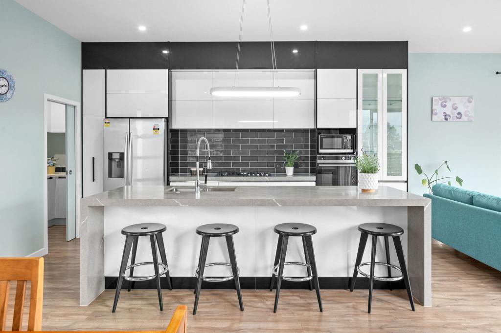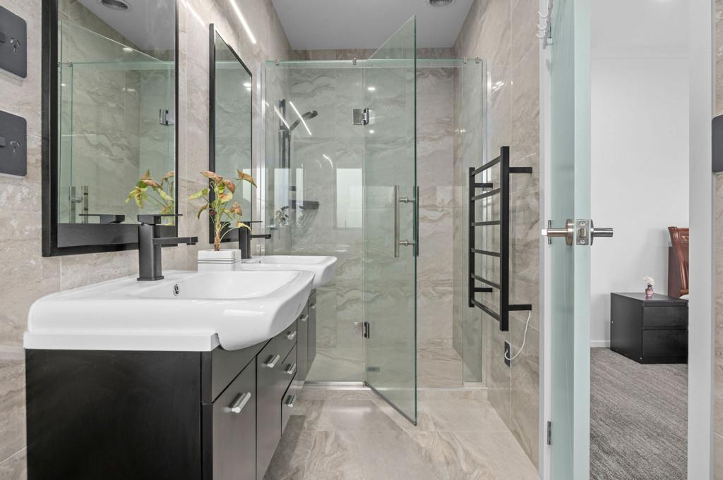 Generously proportioned offering five bedrooms, the bedrooms are thoughtfully separated from the living area. The main family bathroom is set to impress featuring a fully tiled shower, stylish black tapware and feature freestanding bath. The master suite offers stacking sliders connecting with the outdoors, a walk-in-robe and well-appointed ensuite with quality fixtures, fittings as well as convenient Jack and Jill sinks.