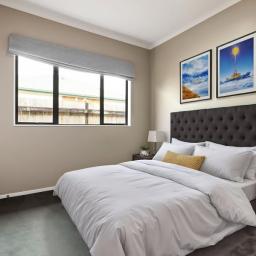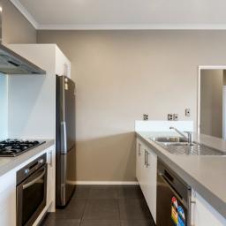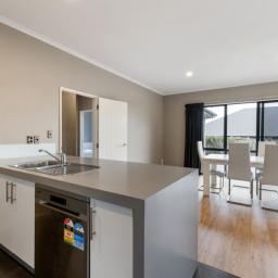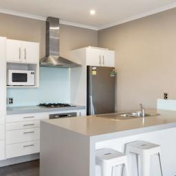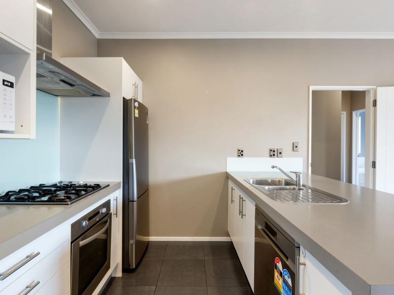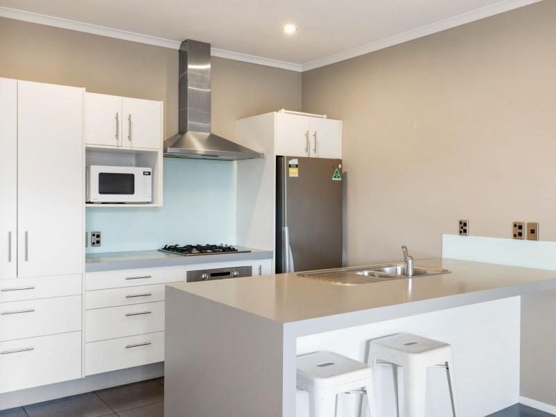 High-stud ceilings feature throughout, enhancing natural daylight and creating a sense of openness and flow. The north-facing living zones are designed to capture the sun, with stacker doors opening to a private courtyard that’s perfect for entertaining or relaxed summer evenings. At the heart of the home sits an open plan kitchen with gas cooking, a breakfast bar and a full range of appliances.