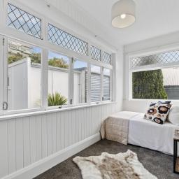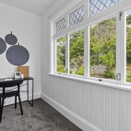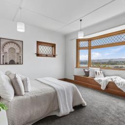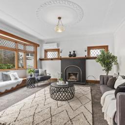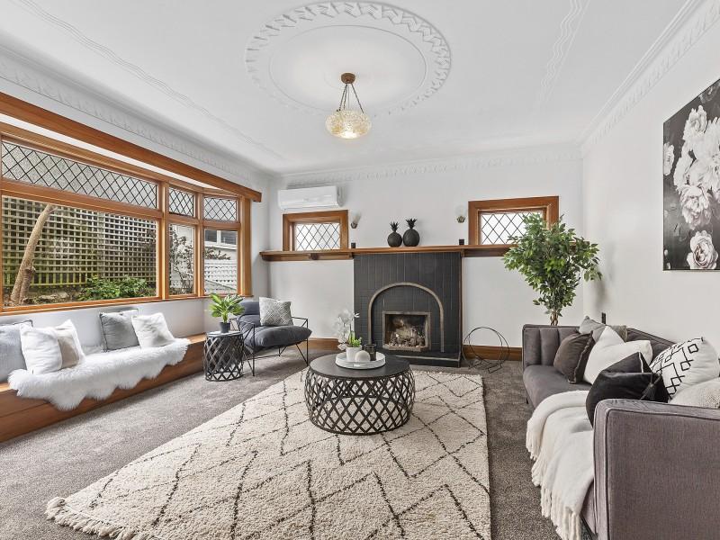 - Superbly presented '30s showcase, complete with bay window seats in the lounge and master bedroom, decorative ceilings, stained leadlights, original doors, matai floorboards and even a tiled (non-working) fireplace