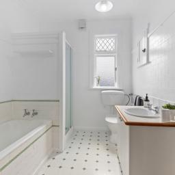 - Full bathroom with deep bath and separate shower, as well as the convenience of a second toilet under the stairs