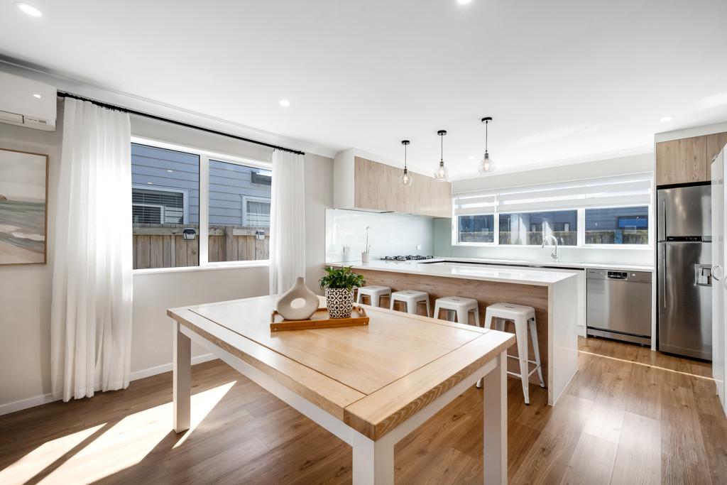 Step inside and you're greeted by a warm, contemporary space where the open-plan living and modern kitchen truly anchor the home. The sleek kitchen blends effortlessly with the generous living and dining areas, creating the perfect setting for relaxed daily living or hosting family and friends. A refined colour scheme, well-placed lighting, and quality finishes bring a sense of harmony to every room.