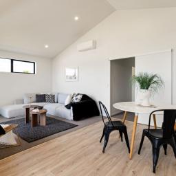 Step through the door, head upstairs and immediately feel the openness created by the beautifully raked ceilings in the kitchen and main living area. This thoughtful design floods the space with natural light and enhances the sense of volume, giving the home a refined, contemporary edge.