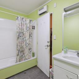 Step inside to a large living area ideal for relaxation or entertaining. The step-up kitchen adds charm and features ample counter space, flowing seamlessly into a dedicated dining area.
