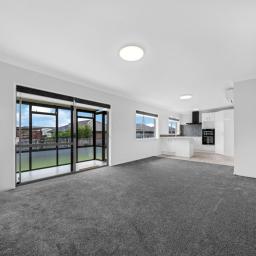 Open plan lounge, dining and modern kitchen with brand new appliances.