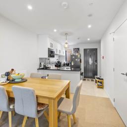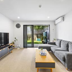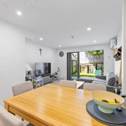 • The open-plan ground floor creates a spacious, welcoming environment ideal for relaxing or entertaining friends. The living area flows seamlessly onto a private garden, offering effortless indoor-outdoor living.