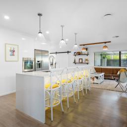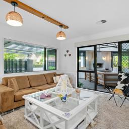 At the heart of the home is a stylish kitchen flowing effortlessly into open-plan dining and living spaces, with two additional lounges offering versatility for family living or entertaining. Designed for comfort and style, the home features ducted heating and cooling throughout, tiled bathrooms with underfloor heating, and timeless functionality that enhances everyday living.