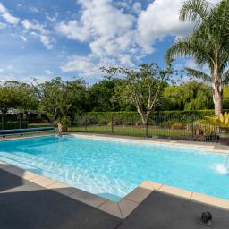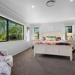 The master suite offers a true retreat, featuring a private covered courtyard, walk-through wardrobe, and luxurious ensuite. Outside, beautifully landscaped grounds frame the property, while the swimming pool provides an inviting focal point for family fun and relaxation.