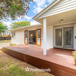 This inviting property features three bedrooms, each with its own wardrobe, and open-plan living with French doors opening from the lounge onto a sunny, west-facing deck - perfect for entertaining or unwinding after a long day.