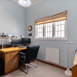 The spacious living room provides a cosy haven for everyday life, the kind of space that invites you to unwind after a long day. Timber floors and window frames add warmth and charm, while the gas fire, HRV system and two heat pumps ensure comfort year-round.
