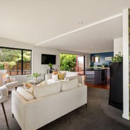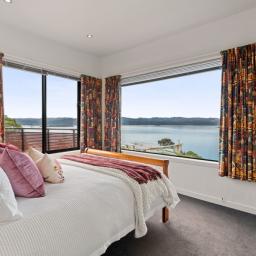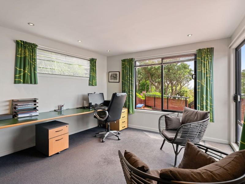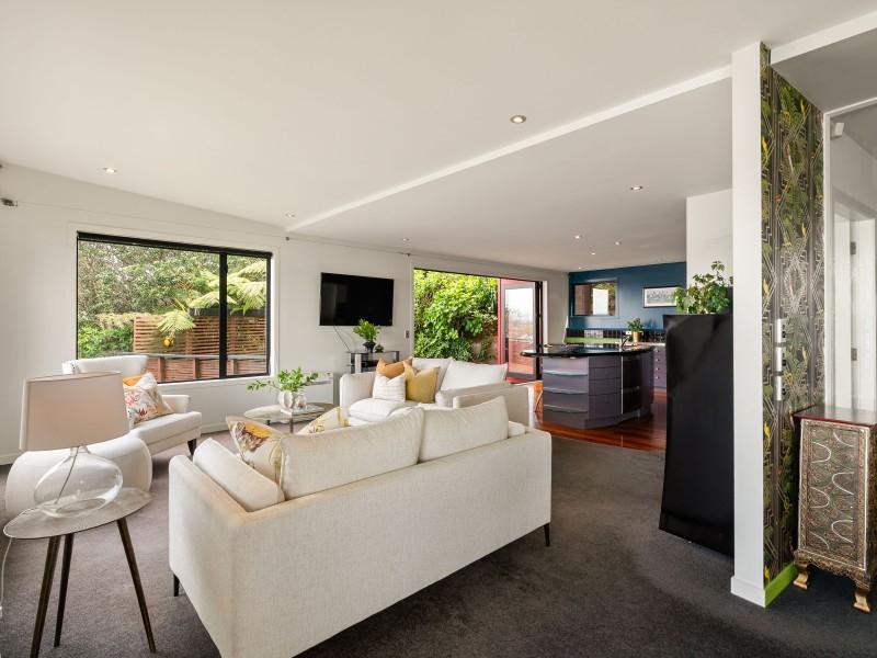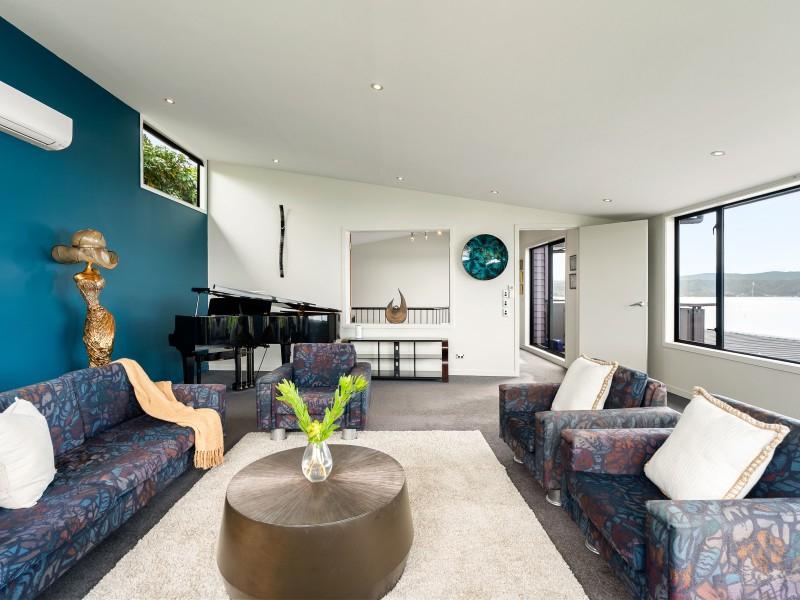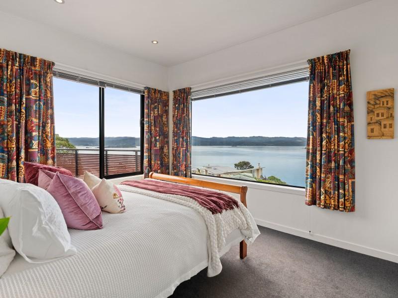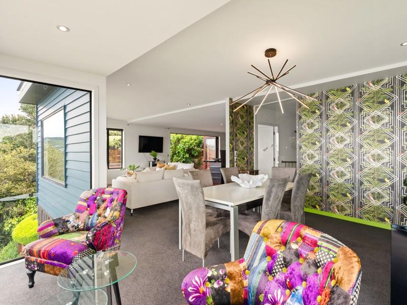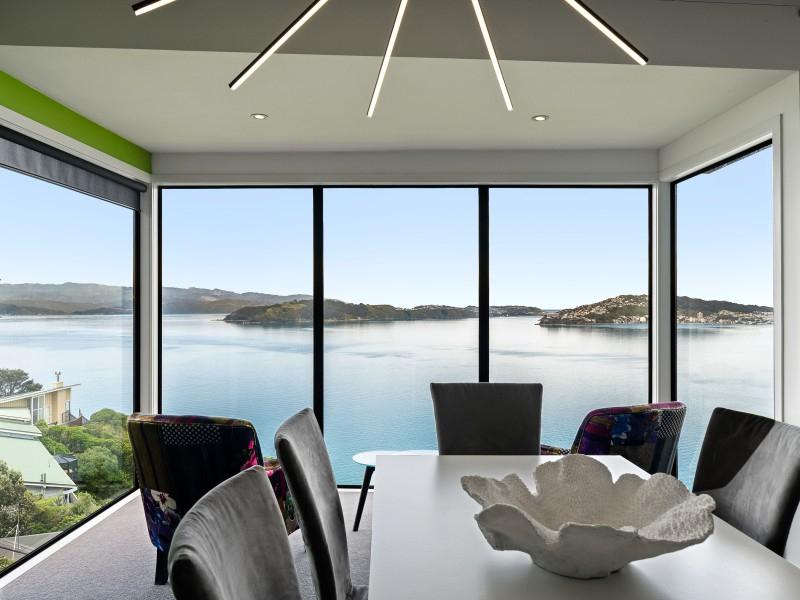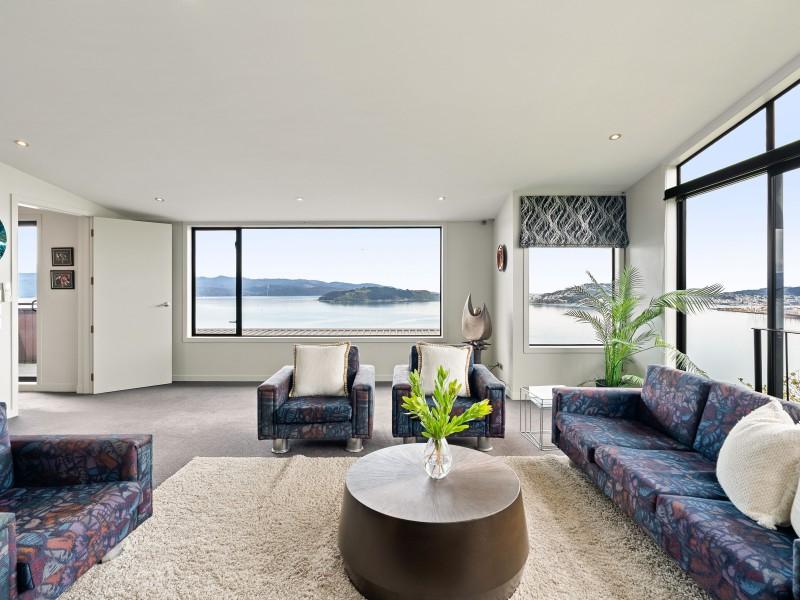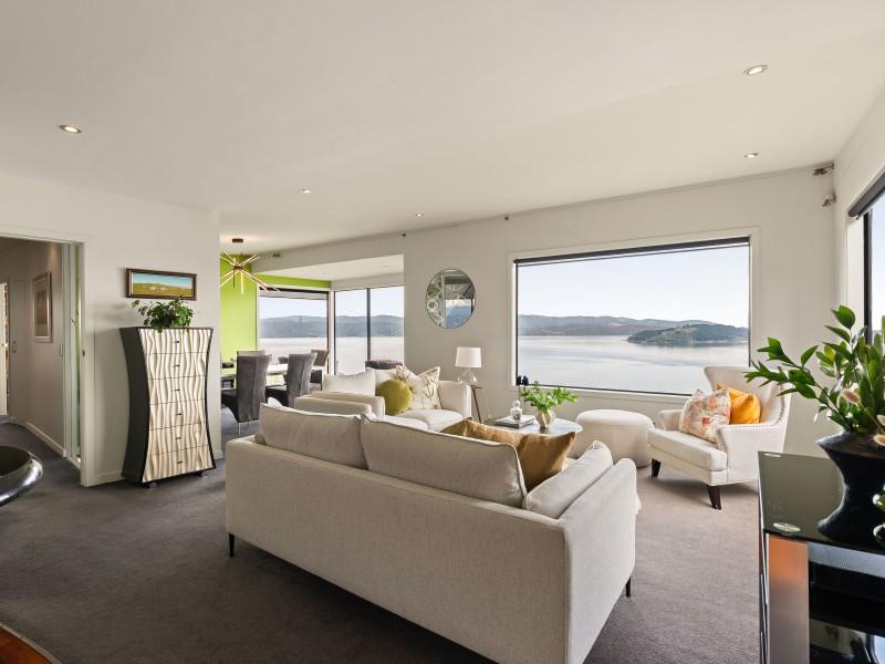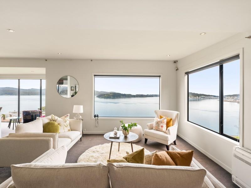 The open-plan kitchen, dining and living area takes full advantage of the panoramic 180 degree views across Wellington City and the Hutt Valley. Warmth and comfort are assured with underfloor heating in the living area and two heat pumps servicing the main and upper levels. The home offers four double bedrooms, including a generous master with ensuite and excellent storage, plus two further bathrooms to accommodate family and guests with ease.