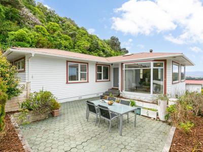 This gorgeous two bedroom 1970s retro gem is spacious, bathed in sun and has a wonderful view out over Karori from the full length windows and has the added bonus of no body corporate costs or restrictions.