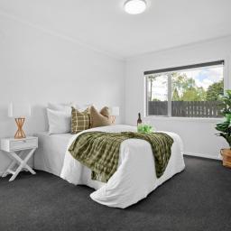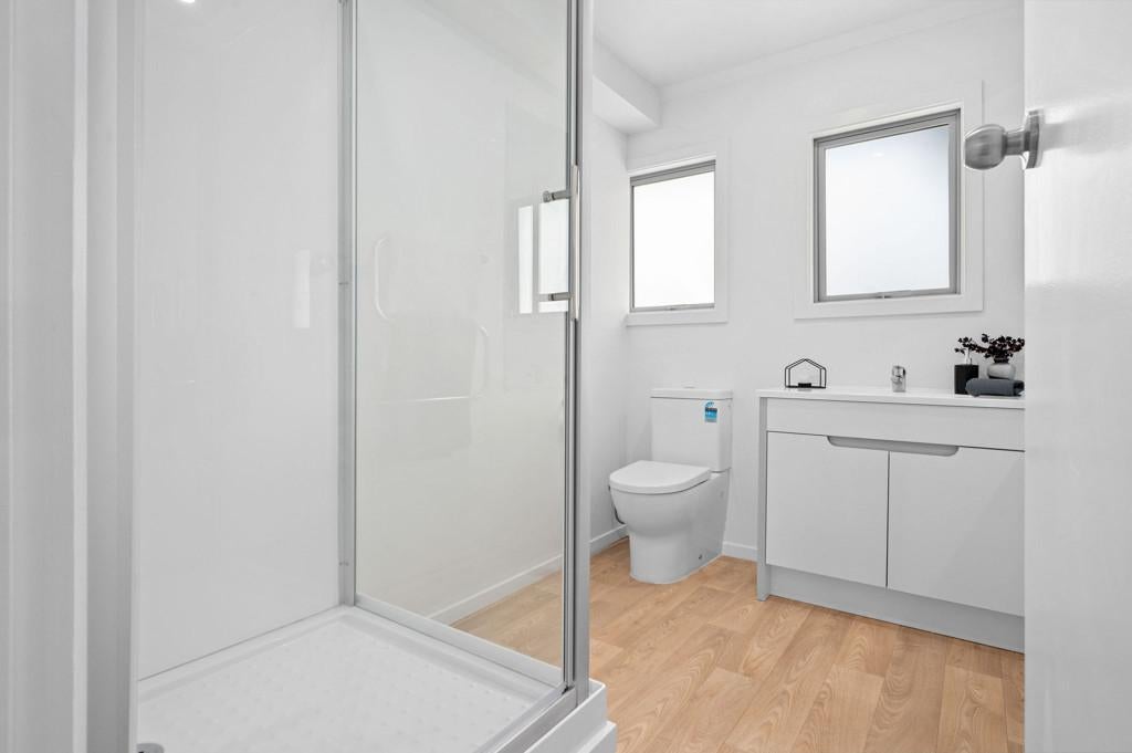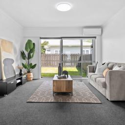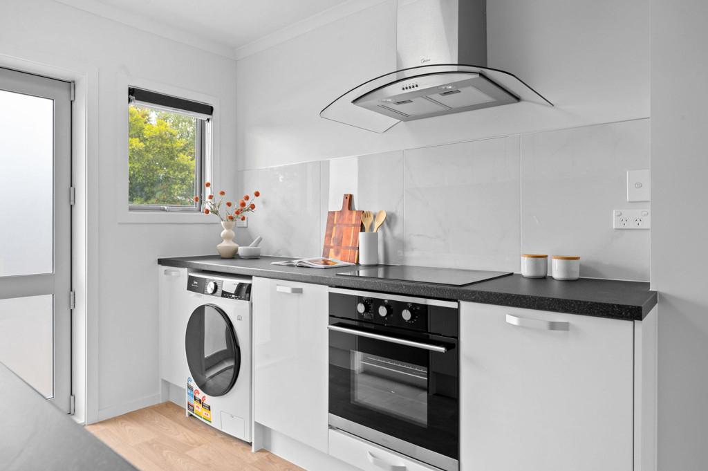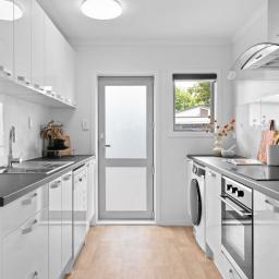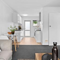 This stylishly renovated 2-bedroom, 1-bathroom unit offers low-maintenance living with modern comforts throughout. Enjoy year-round comfort thanks to full double glazing and a heat pump, while the freshly updated kitchen features sleek white cabinetry, stainless steel appliances, a dishwasher for easy everyday living and and the added bonus of a washer/dryer as well.
