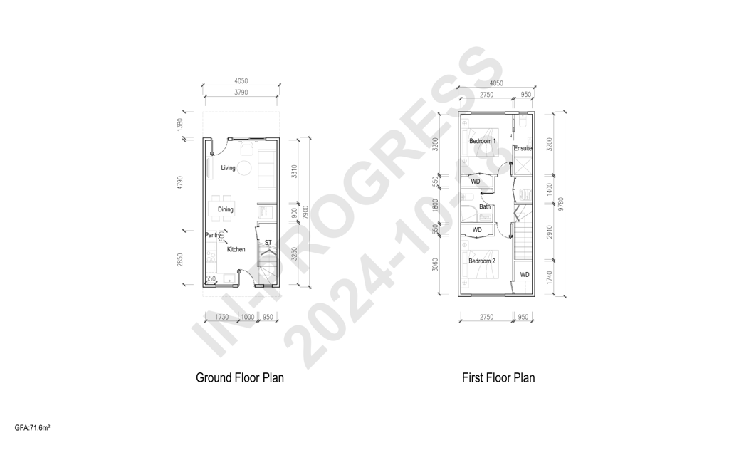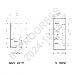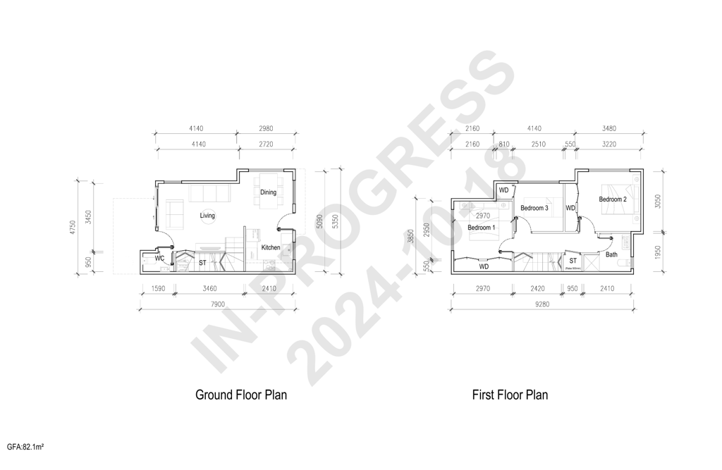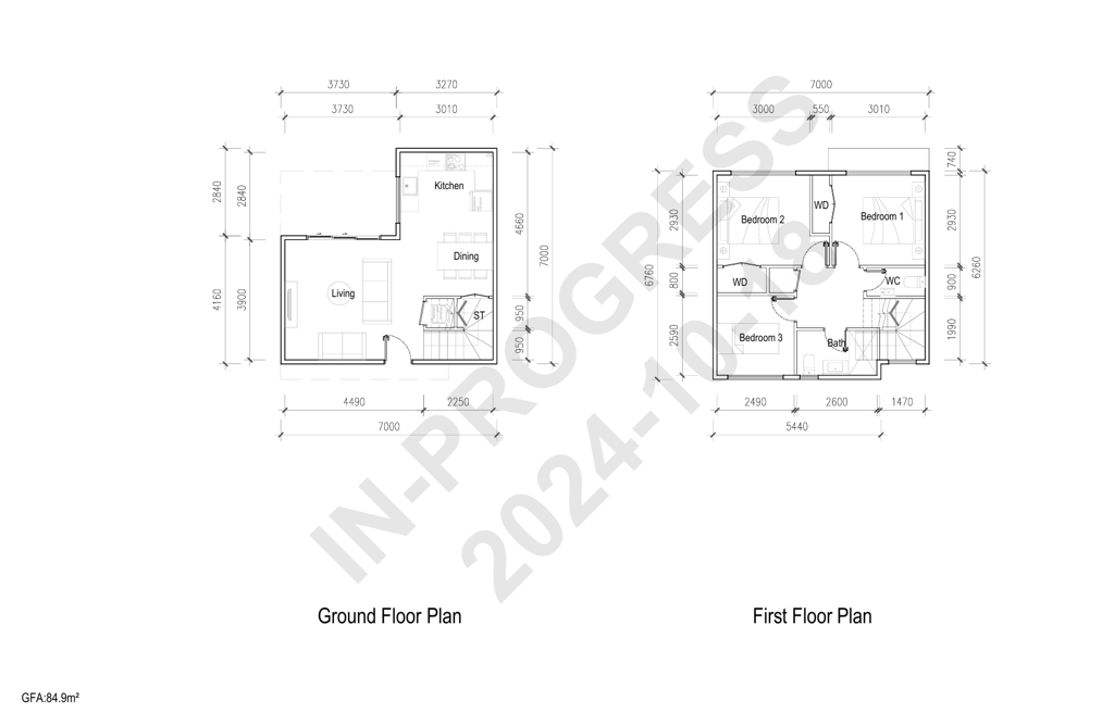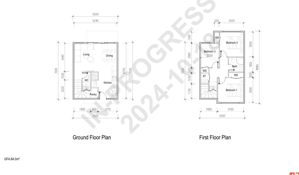 Three standalone houses and four duplexes, all two-storeys. Practical design, simple to build, and easy to sell!
