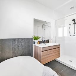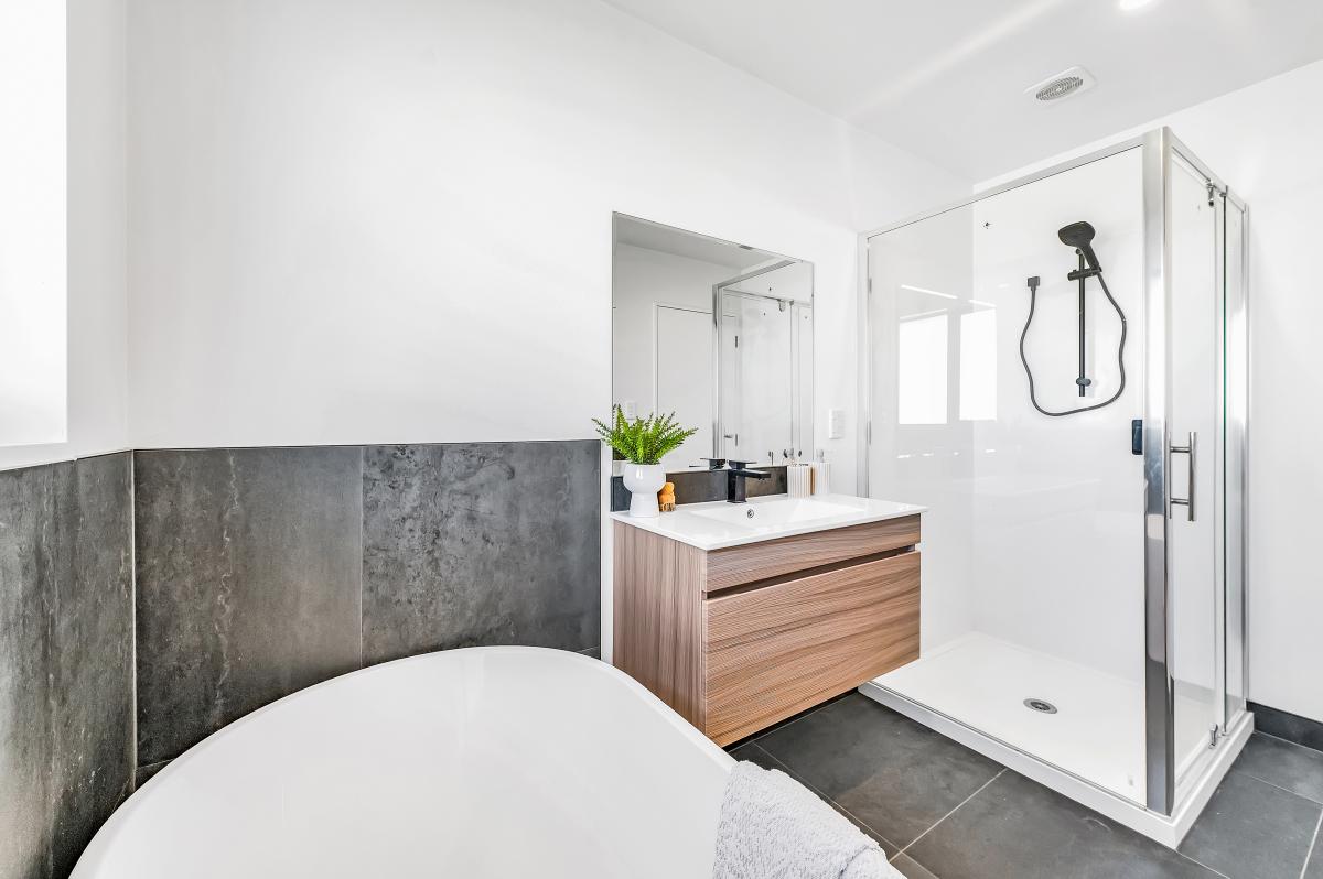 Practicality meets sophistication with features like tiled flooring, a separate laundry, and modern wall-hung vanities. Double-glazed joinery ensures comfort year-round, while the outdoor area boasts a perfect mix of lawn and hard landscaping. The timber decking and fenced yard provide an inviting space for relaxation, play, or entertaining.
