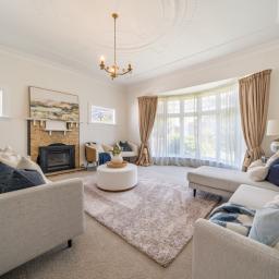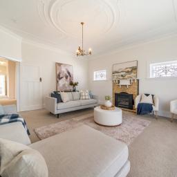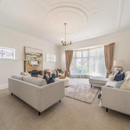 The large lounge with ceiling to floor windows is light and bright, and allows for plenty of furniture and a flexible layout.