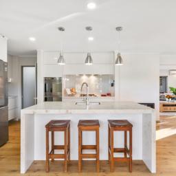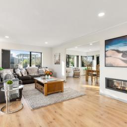 Inside, sunlight pours into the open-plan living space, warmed by a double-sided gas fireplace and supported by a heat pump and extensive double glazing. The designer Carlielle kitchen is built to last, with premium finishes, stone benchtops, high-end appliances, and a superb scullery featuring a second dishwasher and a pass-through to the BBQ area. Bifold doors open wide to a large covered patio made for all-season entertaining.