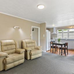 A light-filled open-plan lounge and dining area, complemented by a tidy kitchen with electric stove and rangehood. Comfort is covered year-round with a heat pump plus ceiling and underfloor insulation. Three spacious bedrooms, a well-appointed bathroom, and separate WC add to the everyday ease.