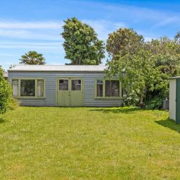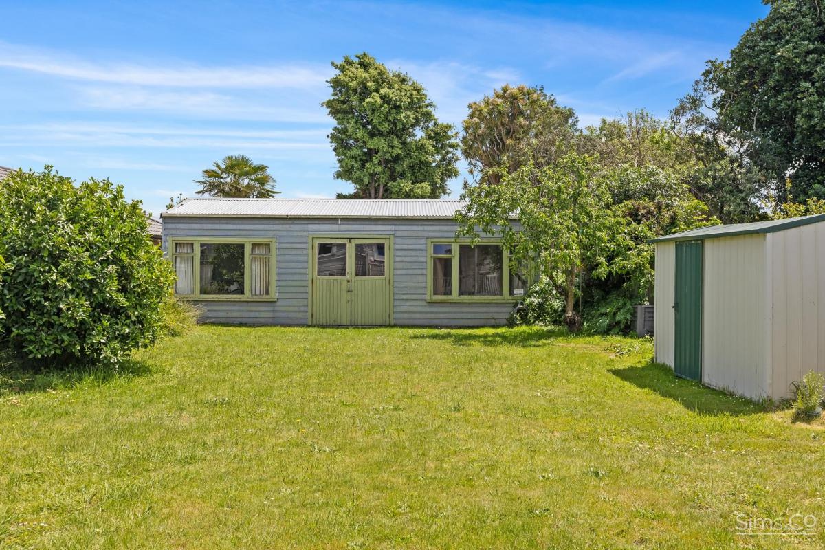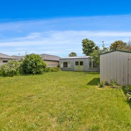 The generously sized rear lawn offers ample room for children, pets, or garden enthusiasts to make the space their own. The large rear shed provides excellent storage or workspace potential, complemented by an additional garden shed for everyday tools and equipment. The front car-pad allows for practical off-street parking.