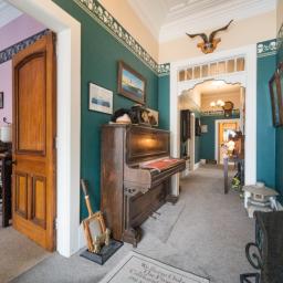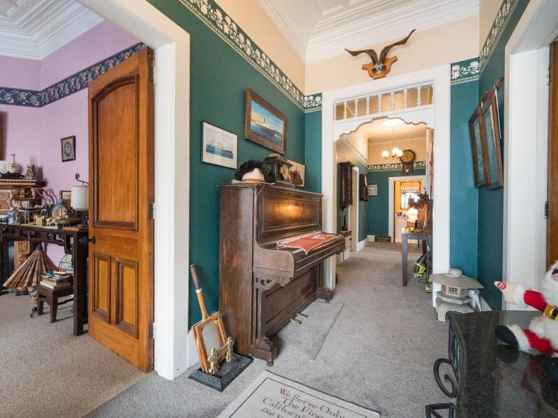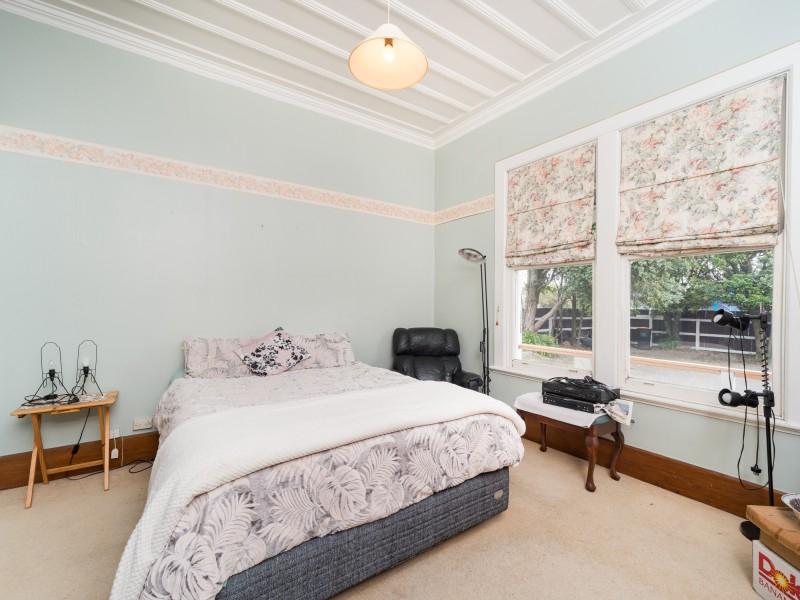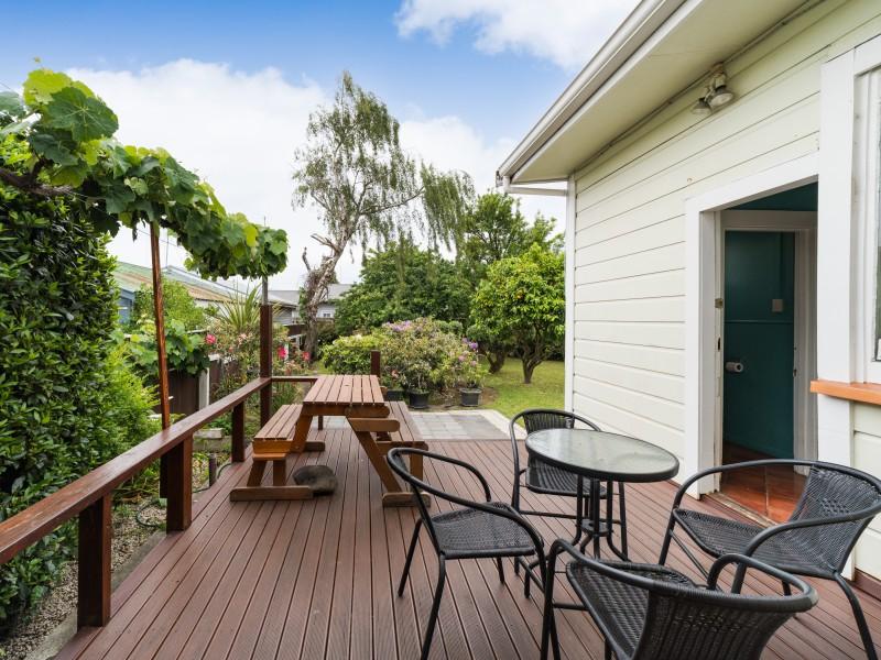 The interior of this house offers some unique character features, including ornate fireplaces, high stud timber ceilings, a wide hallway, and five good-sized bedrooms to fit your needs. The rear bedroom opens through French doors to a private, sheltered deck and beautifully planted 809m2 section with fruit trees. You will love the wrap-around veranda of that era, which also opens to the large living area. The lounge offers a new logfire, the bathroom has been upgraded, the water cylinder has been replaced recently, and there is a second separate toilet for convenience. The kitchen is functional but offers you the opportunity to stamp your mark on the property. The section is well fenced, and to the front of the house is a double garage with mezzanine storage and off-street parking at the front of the garage.
