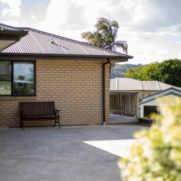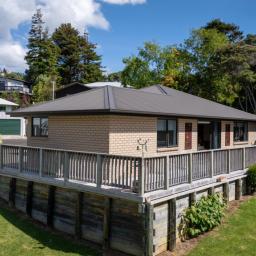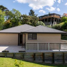 Set in a private cul de sac with a peaceful elevated outlook, this modern brick home offers something genuinely scarce in Raglan town: contemporary construction, low maintenance grounds, and views to Mount Karioi with soft water glimpses. Built in 2017 with double glazing throughout, it is warm, quiet and incredibly hard to replace in this tightly held pocket of town.