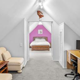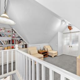 When it's time to unwind for the evening, the upper level is a place to revive, with four spacious bedrooms and yet another living space, which can be used as an office or play area. Two bathrooms on this level include a family bathroom and ensuite for the super-sized master bedroom.
