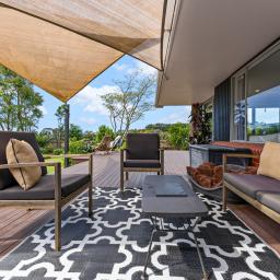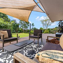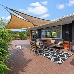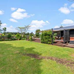 The outdoor spaces are a real highlight—an entertainer's deck steps down to a private lawn, surrounded by established gardens, raised vege beds, citrus trees, a greenhouse, and a handy outdoor workbench. It's an ideal set-up for those who love homegrown produce and relaxed summer living.