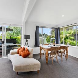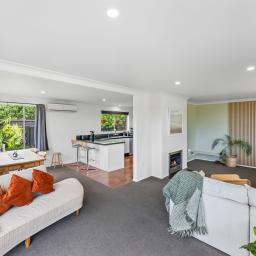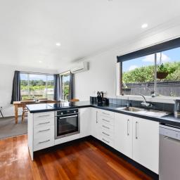 Positioned for convenience in vibrant Oakura, this beautifully maintained three-bedroom home offers effortless family living with modern comforts throughout. Light-filled open-plan living is warmed by a gas fireplace and heat pump, with a sleek kitchen, a dedicated office nook, and a fresh, functional laundry completing the interior.