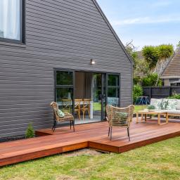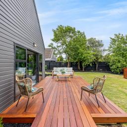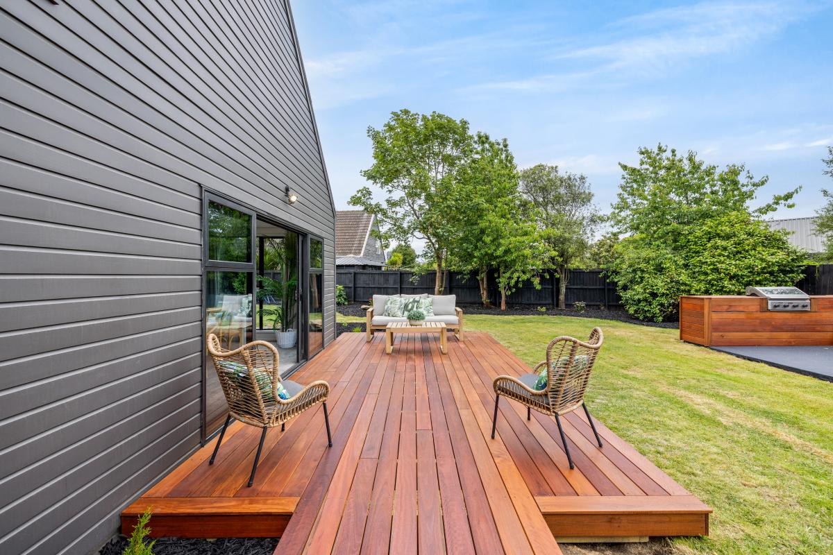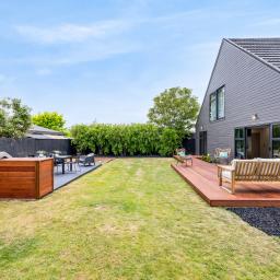The section is big, private, and beautifully finished. There’s lawn for the kids, established planting for privacy, and an outdoor setup that was made for summer barbies.