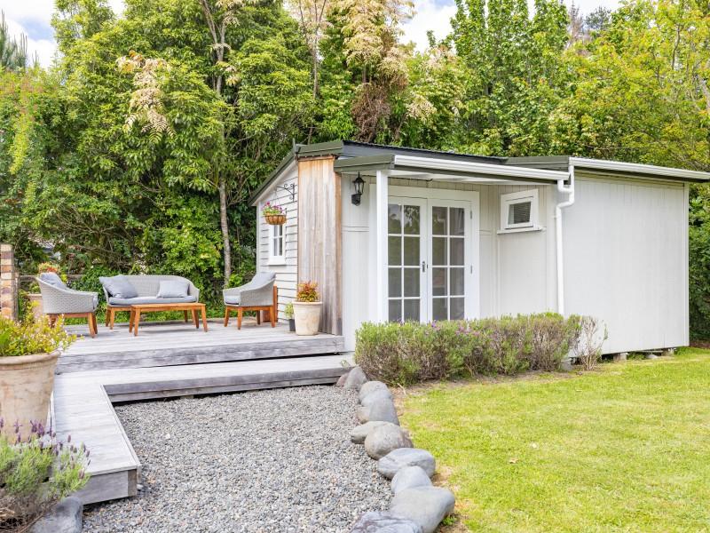 Outside, you will find expansive decking that wraps the home in sunshine and atmosphere. Fire up the pizza oven, gather with friends, and enjoy evenings under the stars. And tucked privately at the rear sits a delightful batch style retreat a clever, compact dwelling complete with a kitchenette (without cooking facilities), a bathroom, space for laundry, and even a pull-down wall bed. Every inch has been thoughtfully designed, making it ideal for guests, extended family, or Airbnb income potential.