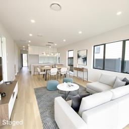 Don’t miss this fantastic opportunity to secure a brand-new, 3-bedroom, 2-bathroom home featuring a master ensuite and walk-in wardrobe. The home boasts a modern open-plan kitchen with quality appliances, flowing seamlessly into the open-plan dining and living area, which extends onto an elevated, north-facing deck with semi-rural views — perfect for relaxing or entertaining outdoors. A central heating and cooling system ensures year-round comfort, while the carpeted single-car garage provides internal access.