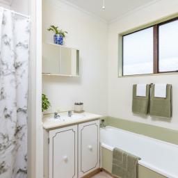 The home provides three light-filled bedrooms, one with ranchsliders out to the covered veranda where one can sit undercover all seasons. The family bathroom and toilet are separate for convenience, as is the laundry which has it's own exterior door to the west facing veranda.