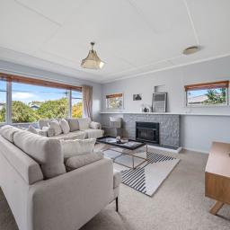 Outdoors, enjoy the easy-care tiled courtyard and established gardens with mature fruit trees, creating a relaxing space to unwind.
