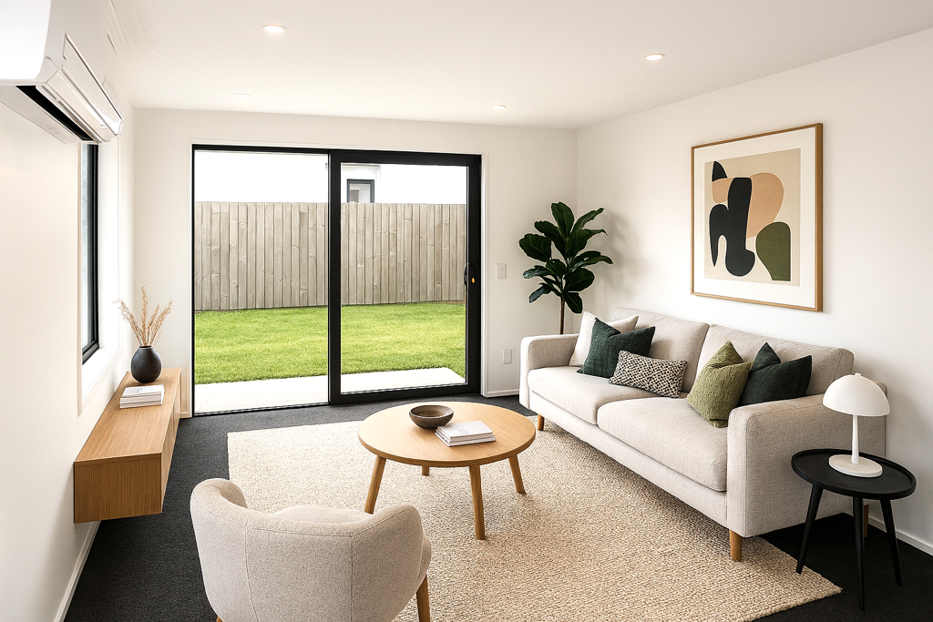 We have watched these lovely, spacious townhouses be built and now they are ready to you to move in and enjoy. Built on the flat, these three townhouses are freehold, each with their own titles and all have been finished to a high standard. Double glazed thermal windows and doors, extra insulation layers and wall mounted heatpump, ensure the homes are warm and dry. Enter through the front door and be greeted instantly by the feel of space. Open plan living is generous with defined areas for dining and living. Indoor/outdoor flow can be accessed from both the dining and lounge areas, via the sliding doors. The warmth radiates from the honey gold kitchen joinery, complimented nicely by the cream bench top. Features in the kitchen include island bar, dishwasher, rangehood, cooktop/wall oven and expansive storage. Two double bedrooms with double built in wardrobes and generous windows are light and inviiting. In the spacious bathroom you find underfloor heating, a glass wet floor shower, wall hung vanity, toilet and heated towel rail. Spacious single garage and laundry can be accessed internally or via the electric garage door. Each section has been fenced and planted to be easycare but there is still room for you to make it suit your style of living. Be first and take your pick of A, B or C. Call Leona to view now 0274 820 908