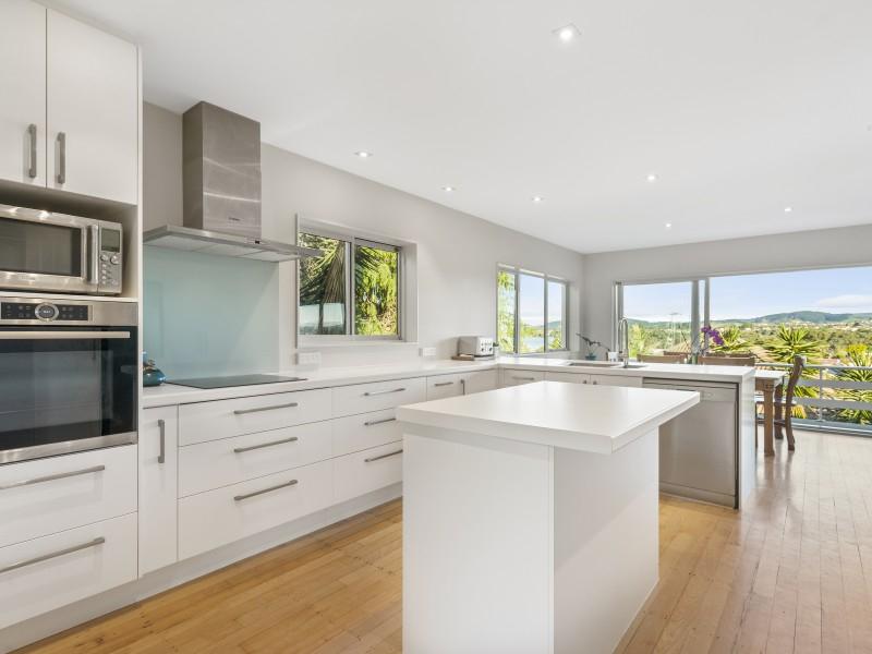 Beautifully modernised and elevated to embrace sweeping estuary and mountain vistas, the home enjoys a stunning front balcony capturing remarkable sunsets. Indoors, two generous living areas offer effortless separation for family life, entertaining, or creating private retreats for teens or guests. The well-appointed kitchen with double pantries, Bosch appliances, polished timber floors and French doors flows seamlessly to the backyard.